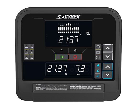 高亮度 LED 显示器清晰易读;六种预设锻炼和快速开始功能;大按钮便于轻松快速的调节;预设坡度(弧步旋转器)或阻力(健身车)按钮让您在间歇训练期间轻松选择您需要的级别。